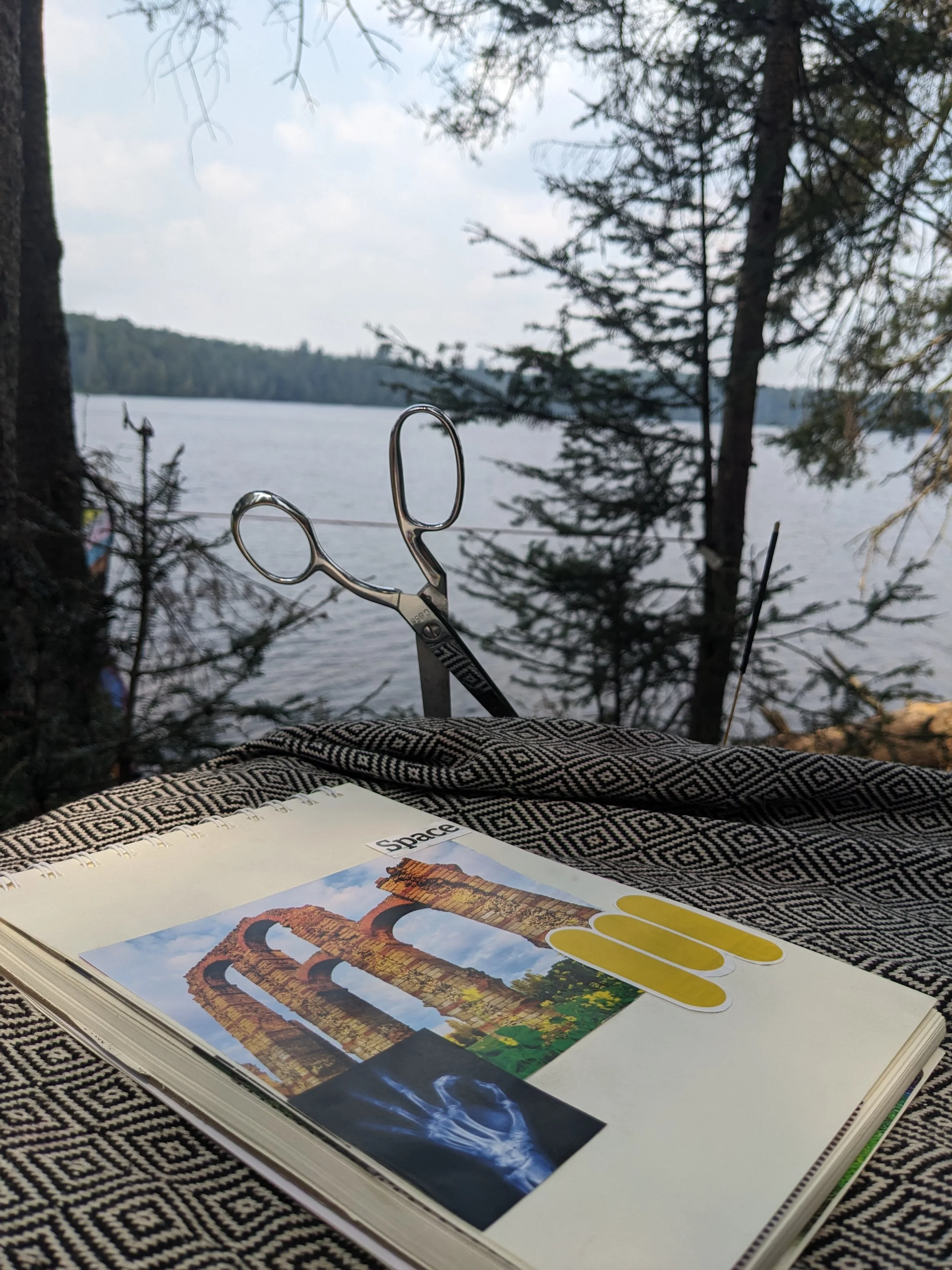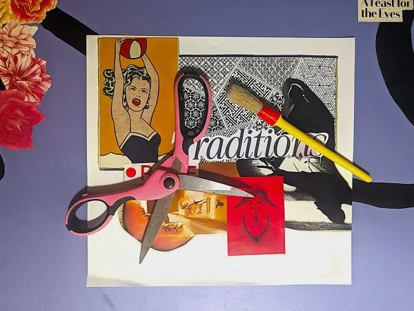 Just you, your instincts and a pair of scissors. The physical act of collage helps release stress and create space for clarity. You don’t need a plan. Just a page.